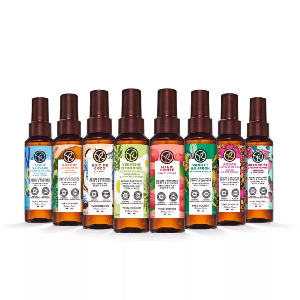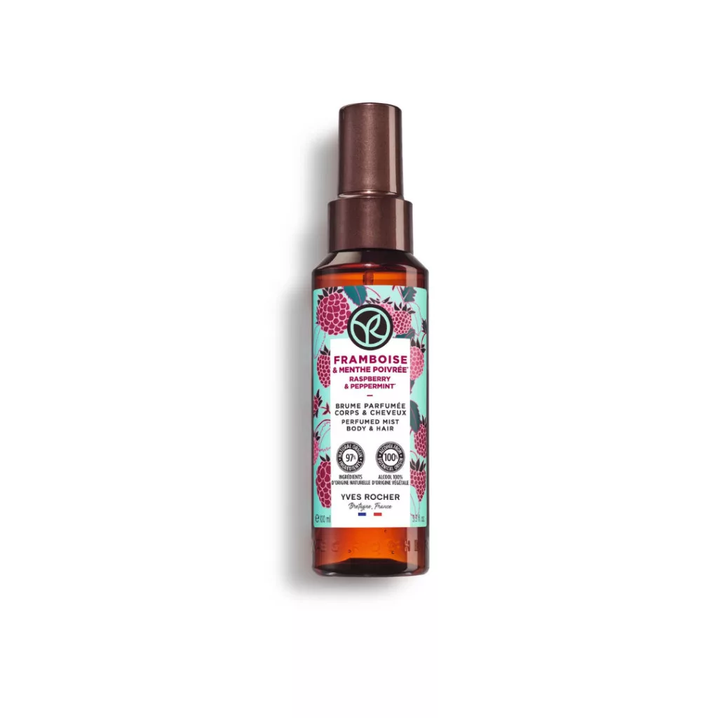 Yves Rocher – voňavý telový a vlasový sprej Malina & mäta pieporná | Jemne parfumovaný sprej na telo a vlasy | 100 ml