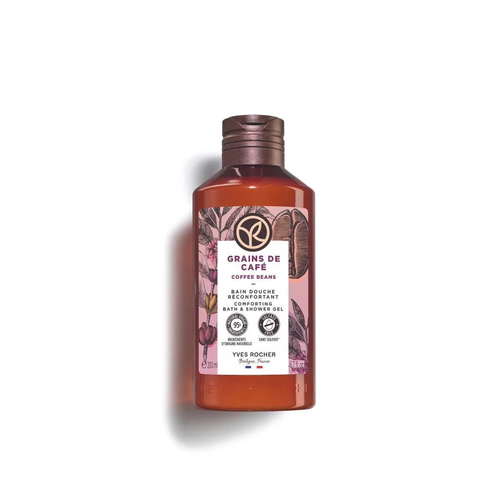 Yves Rocher – upokojujúci sprchový a kúpeľový gél Kávové zrná – 200 ml | Sprchový gél bez sulfátov* a farbív so závislou vôňou pre explozívny zážitok prírody | Sprchový gél bez sulfátov* so závislou vôňou pre pocit prírody
