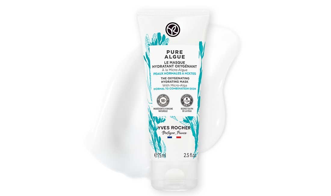Objavte okysličujúcu hydratačnú masku z radu Pure Algue s 98 % prírodných ingrediencií, so zložením obohateným o mikroriasu Tetraselmis, ktorá je známa svojimi okysličujúcimi a antioxidačnými vlastnosťami. Tieto mikroriasy pestujeme pri našom bretónskom pobreží. Maska intenzívne hydratuje, okamžite revitalizuje a zároveň oživuje prirodzenú žiarivosť pleti.