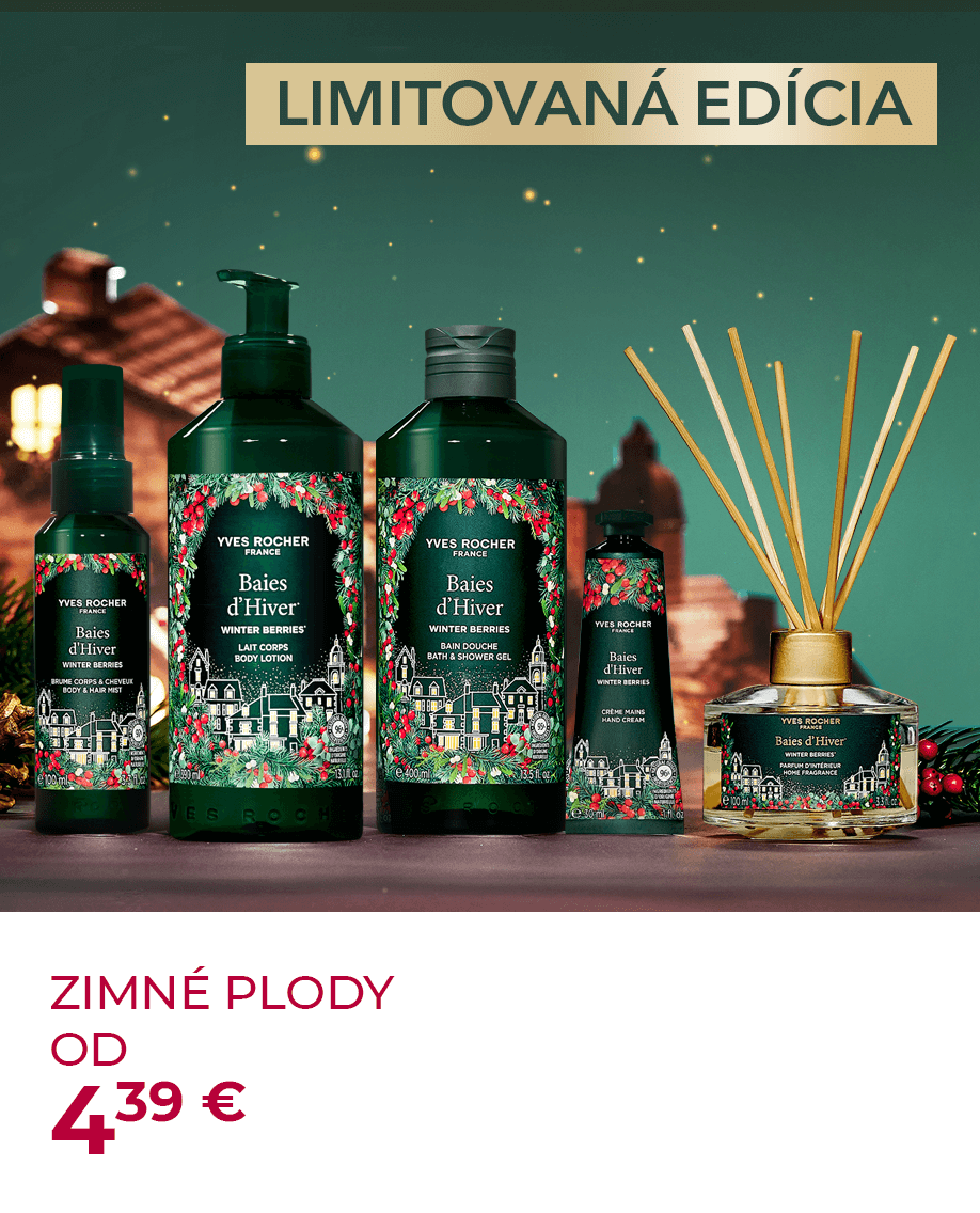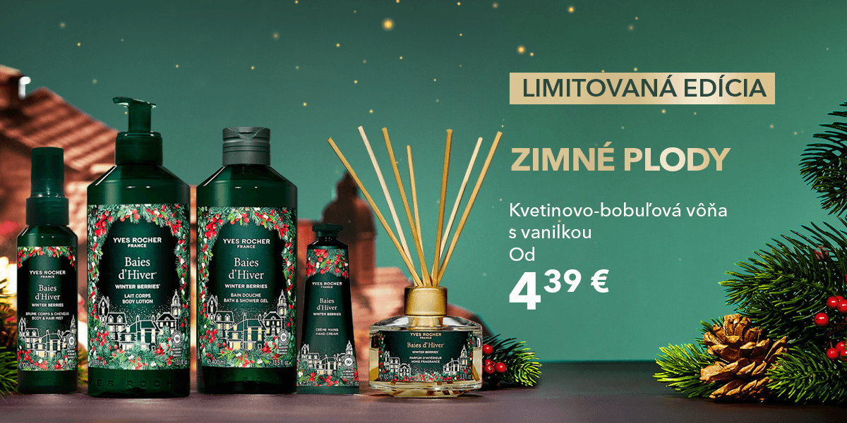 Hlavná stránka Boutique ZÍSKAJTE SVOJE OBĽÚBENÉ PRODUKTYZA VÝHODNÚ CENU Balzam na pery - Zimné plody 4.8 g (0) 4.39 € 100ml: 91.46 € Momentálne nedostupné Sprchovací gél - Mandarínka & ihličie 400 ml (0) 8.99 € 100ml: 2.25 € Vložiť do košíka Vyživujúce telové mlieko - Karité & bergamot 200 ml (0) 19.99 € 100ml: 10.00 € Vložiť do košíka LIMITOVANÁ EDÍCIA VIANOČNÁ KOLEKCIA LIMITOVANÁ EDÍCIA VIANOČNÉ SETY LIMITOVANÁ EDÍCIA ZIMNÉ PLODY LIMITOVANÁ EDÍCIA MANDARÍNKA A IHLIČIE LIMITOVANÁ EDÍCIA KARITÉ A BERGAMOT ADVENTNÝ KALENDÁR Darčeková sada - Zimné plody 100 ml, 200 ml (0) 33.99 € Momentálne nedostupné Darčeková sada 2 ks - Mandarínka a ihličie 50 ml, 4,8 g (0) 7.59 € Momentálne nedostupné Darčeková sada 3 ks - Mandarínka a ihličie 50 ml, 30 ml, 30 ml (0) 12.59 € Momentálne nedostupné Darčeková sada 2 ks - Zimné plody 50 ml, 4,8 g (0) 7.59 € Momentálne nedostupné