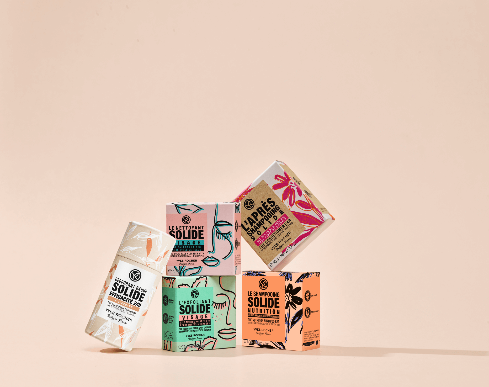 Naša kolekcia tuhých produktov starostlivosti o telo, pleť i vlasy bola vyvinutá špeciálne tak, aby naplňovala naše ekologické záväzky a ponúkala kozmetické produkty, ktoré redukujú náš dopad na životné prostredie. Všetky tuhé produkty z nášho sortimentu sú vyrábané výhradne vo Francúzsku, sú bez sulfátov* a obsahujú 99 % biologicky ľahko odbúrateľných zložiek. Vďaka jemným receptúram a aktívnym ingredienciám z Bretónska ponúkajú naše produkty mimoriadne efektívne výsledky. A čo viac, sú super penivé a užasne voňajú! Ich papierový obal obsahuje 60 % materiálu, ktorý pochádza z nášho vlastného odpadu a je 100 % recyklovateľný. Plast nie je potrebný!