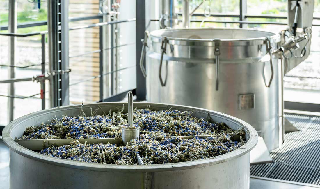V našej výrobni botanických vôd destilujeme listy mäty piepornej, ako aj vrcholky kvetov nevädze, harmančeka rímskeho a harmančeka kamilkového, pretože ich vlastnosti sú prítomné v celej rastline. V skutočnosti teda neprodukujeme len kvetinové vody, ale môžeme použiť taktiež pojmy „botanická voda“ a „rastlinná voda“.