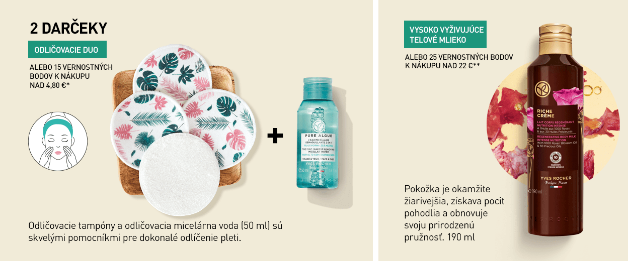 **Zľavy a ponuky sa nekumulujú. Vysoko vyživujúce telové mlieko 190 ml alebo 25 vernostných bodov k nákupu nad 22 € na zákazníka. Ponuka platí do vydania zásob. Zmena darčeka vyhradená.
