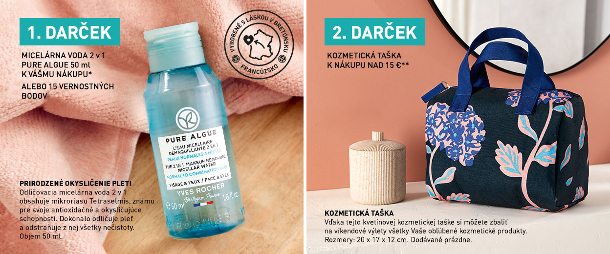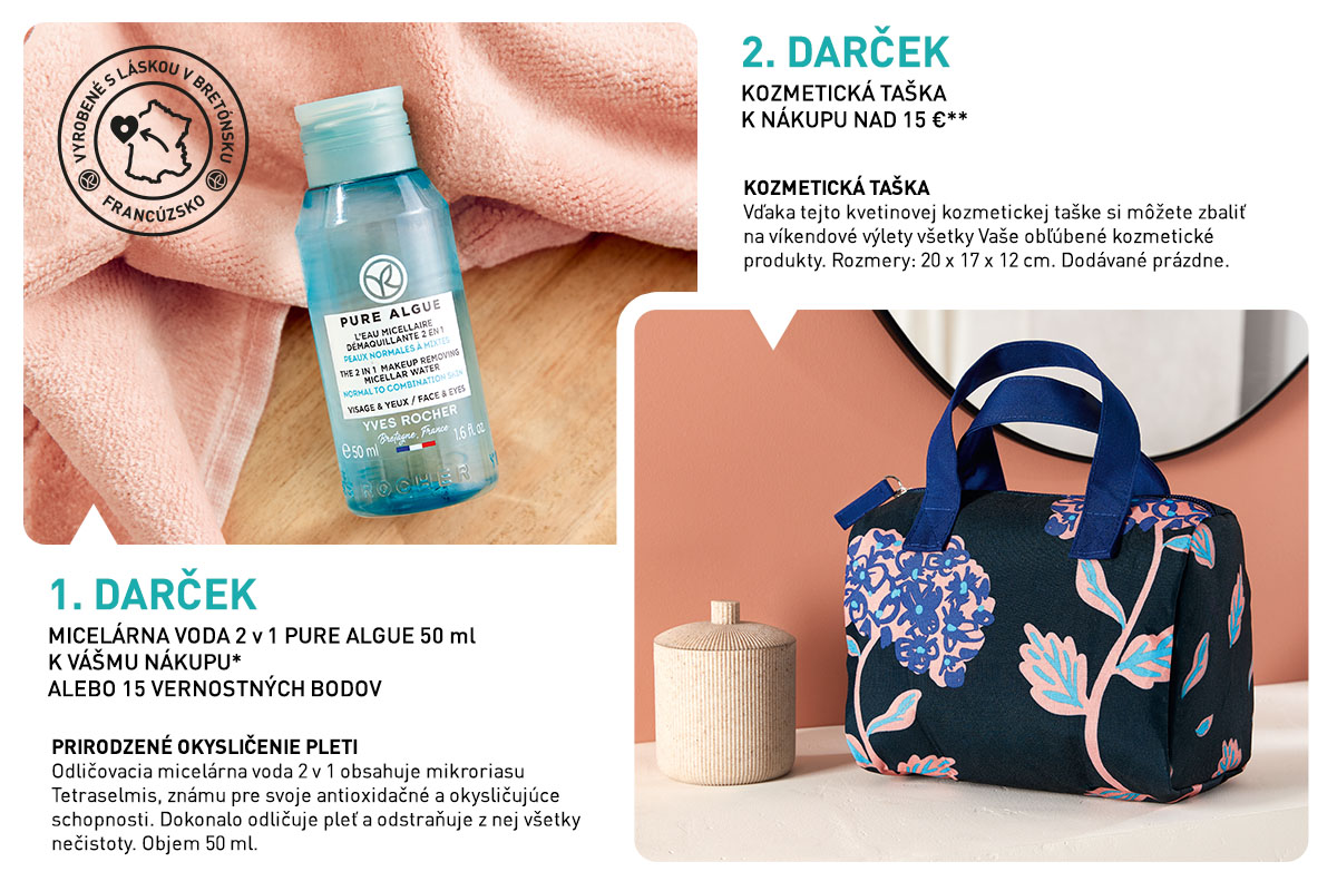 *Zľavy a ponuky sa nekumulujú. Jedna Odličovacia micelárna voda 2 v 1, 50 ml alebo 15 vernostných bodov k nákupu nad 4,49 € na zákazníka. Ponuka platí do vypredania zásob. Zmena darčeka vyhradená.