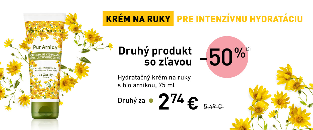 (3) Zľavy a ponuky sa nekumulujú. Druhý Hydratačný krém na ruky s bio arnikou so zľavou 50%. Darčeky budú vydané len raz. Všetky zľavy sa vypočítavajú zo základných cien pred zľavou odporučených v SR od 30.1.2023. Ponuka platí do 31. 3. 2023. Vyhradzujeme si právo ponuku kedykoľvek zmeniť alebo zastaviť v prípade, že dôjdu skladové zásoby.