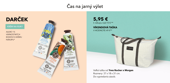 *Jeden Krém na ruky 30 ml (na výber z vôní Mango a koriander, Oliva a petit grain, Morská riasa a motar prímorský) z radu Bain de Nature alebo 15 vernostných bodov k nákupu nad 4,80 € na zákazníka.