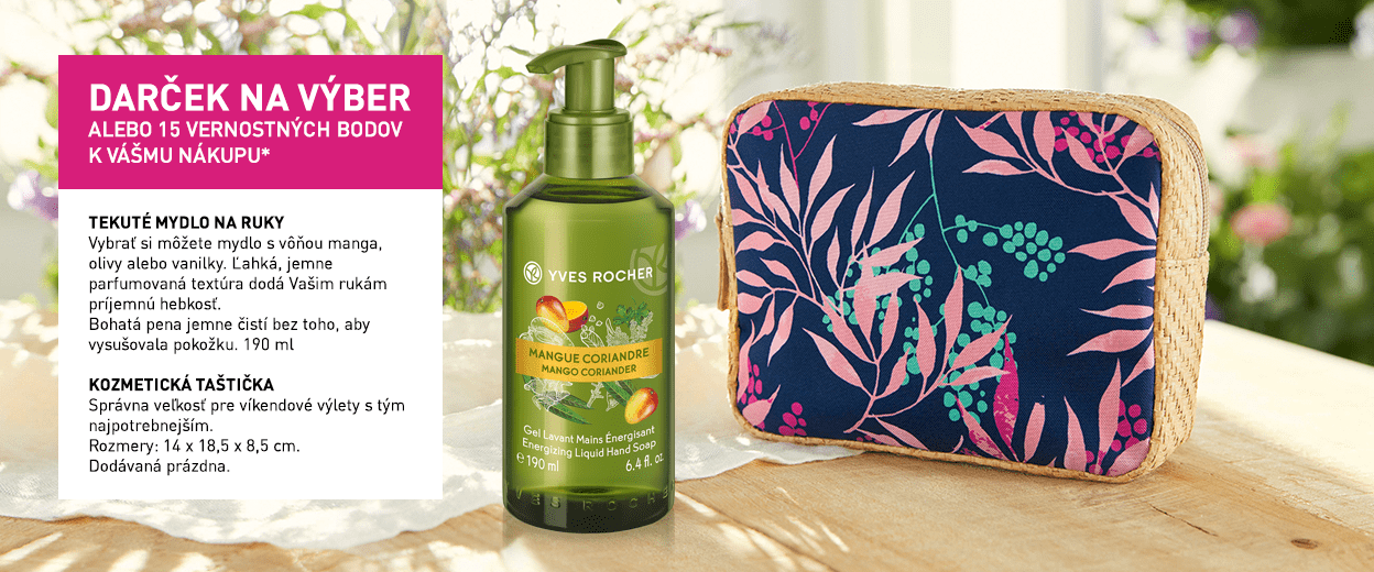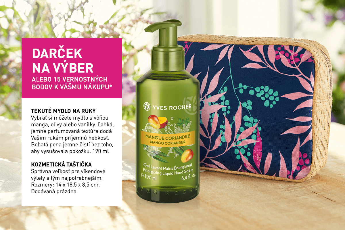 *Zľavy a ponuky sa nekumulujú. Jedno Tekuté mydlo na ruky (rôzne vône) 190 ml alebo jedna kozmetická taštička alebo 15 vernostných bodov k nákupu nad 4,49 € na zákazníka. Ponuka platí do vydania zásob. Zmena darčeka vyhradená.