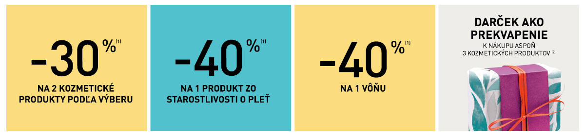 (2) Zľavy a ponuky sa nekumulujú. Jeden darček ako prekvapenie k nákupu aspoň 3 produktov.