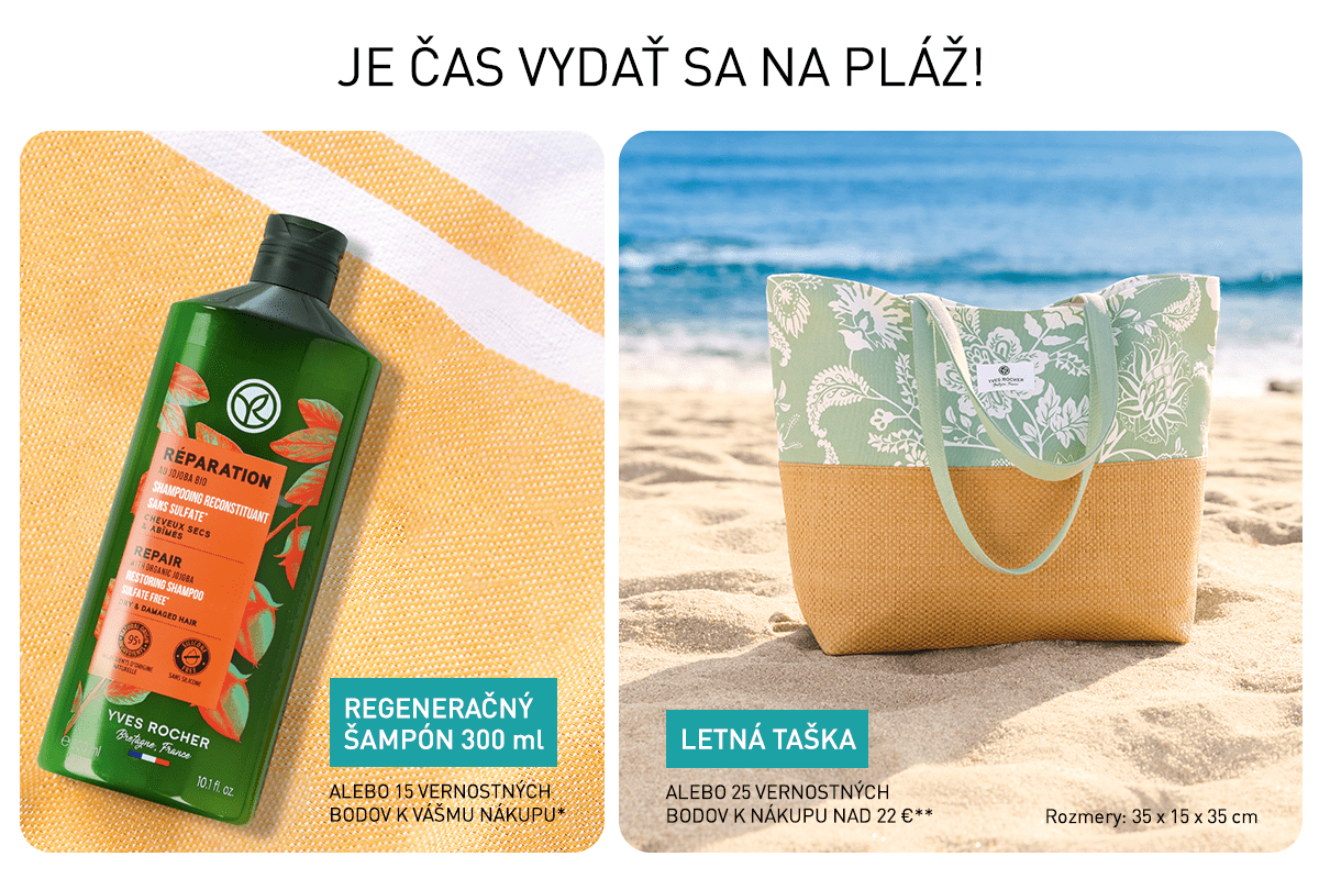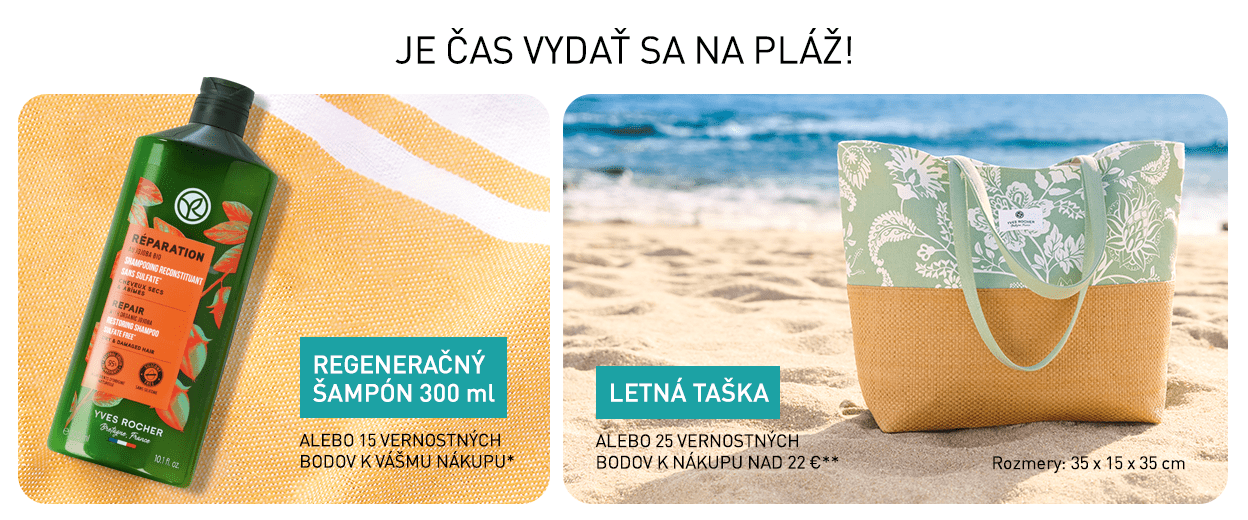 **Zľavy a ponuky sa nekumulujú. Jedna letná taška alebo 25 vernostných bodov k nákupu nad 22 € na zákazníka. Ponuka platí do vydania zásob. Zmena darčeka vyhradená.