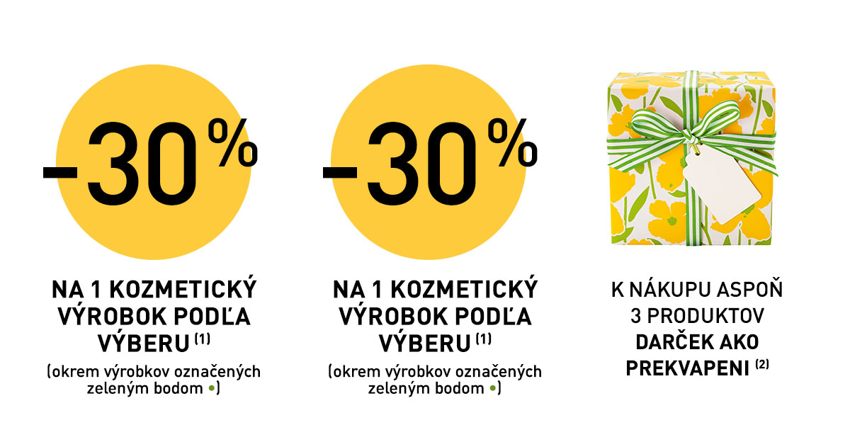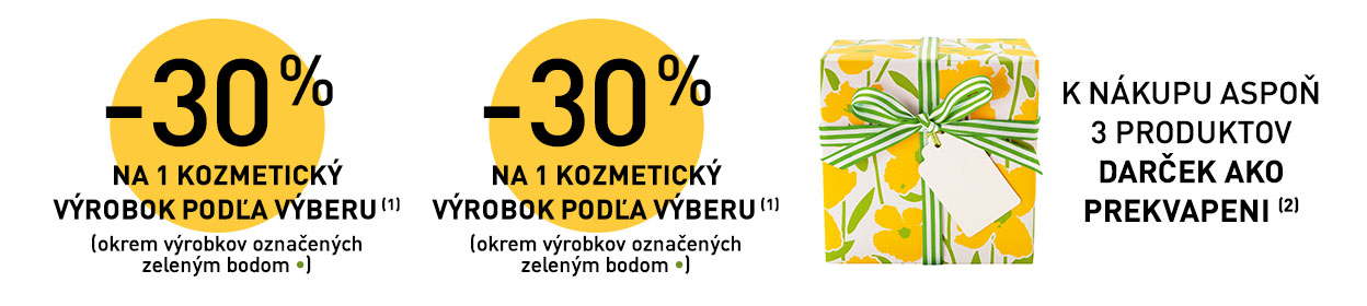 (2) Zľavy a ponuky sa nekumulujú. K nákupu aspoň 3 produktov darček ako prekvapenie.
