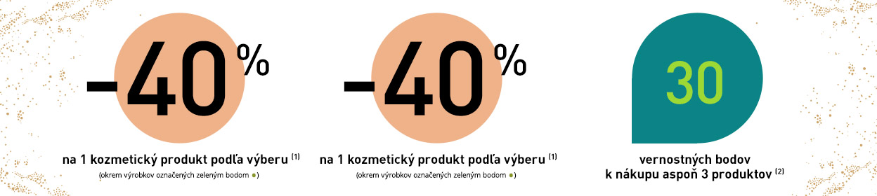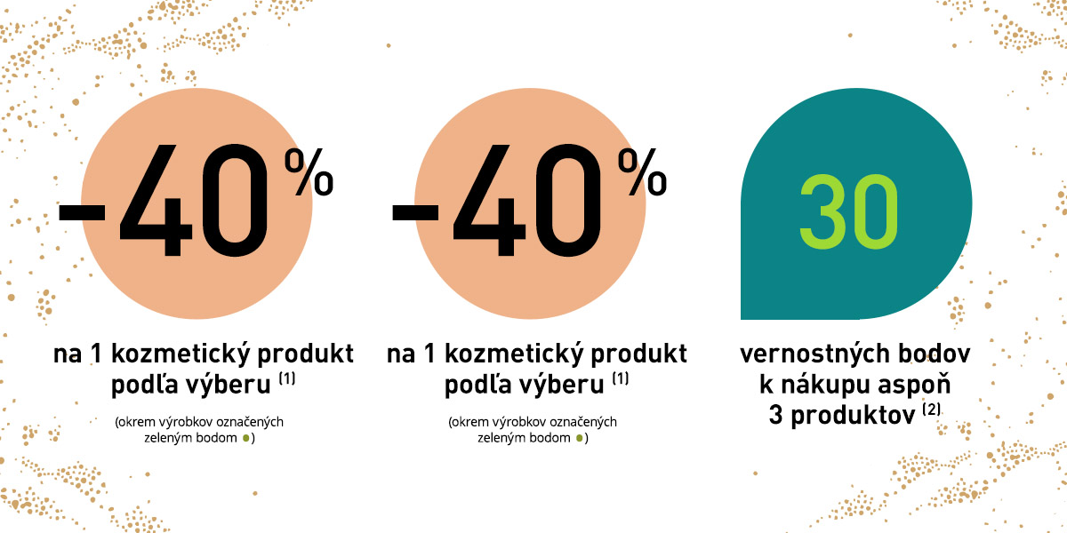 Ponuka platí do vydania zásob. Zmena darčeka vyhradená. Darček bude vydaný len raz. K nákupu 3 produktov 30 vernostných bodov jednorázovo. Newsletter nie je možné uplatniť po platnosti. Ponuka platí v kamennych predajniach a v internetovom obchode do 30.11.2021. Ponuku nie je možné kombinovať a kumulovať s inými akciami. Pred potvrdením objednávky si prosím skontrolujte, či sa zľava načítala. V opačnom prípade sa akčná ponuka neuplatnila. Keď využijete ponuku tohto mailingu, nie je možné vkladať darčeky z ponuky e-shopu. Na ponuku mailingu sa nedá uplatniť vernostná zľava.