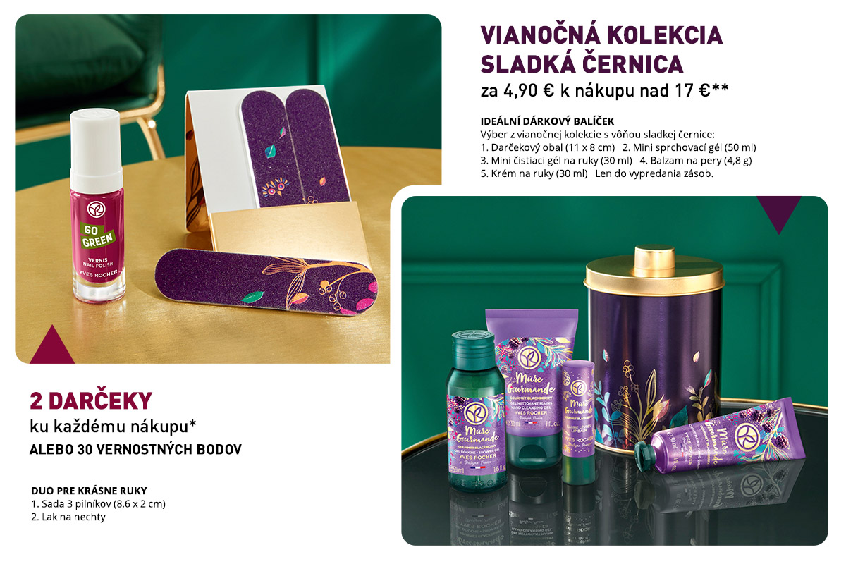 **Jedna sada vianočnej kolekcie s mini produktmi z limitovanej edície Sladká černica za 4,90 € k nákupu nad 17 €.