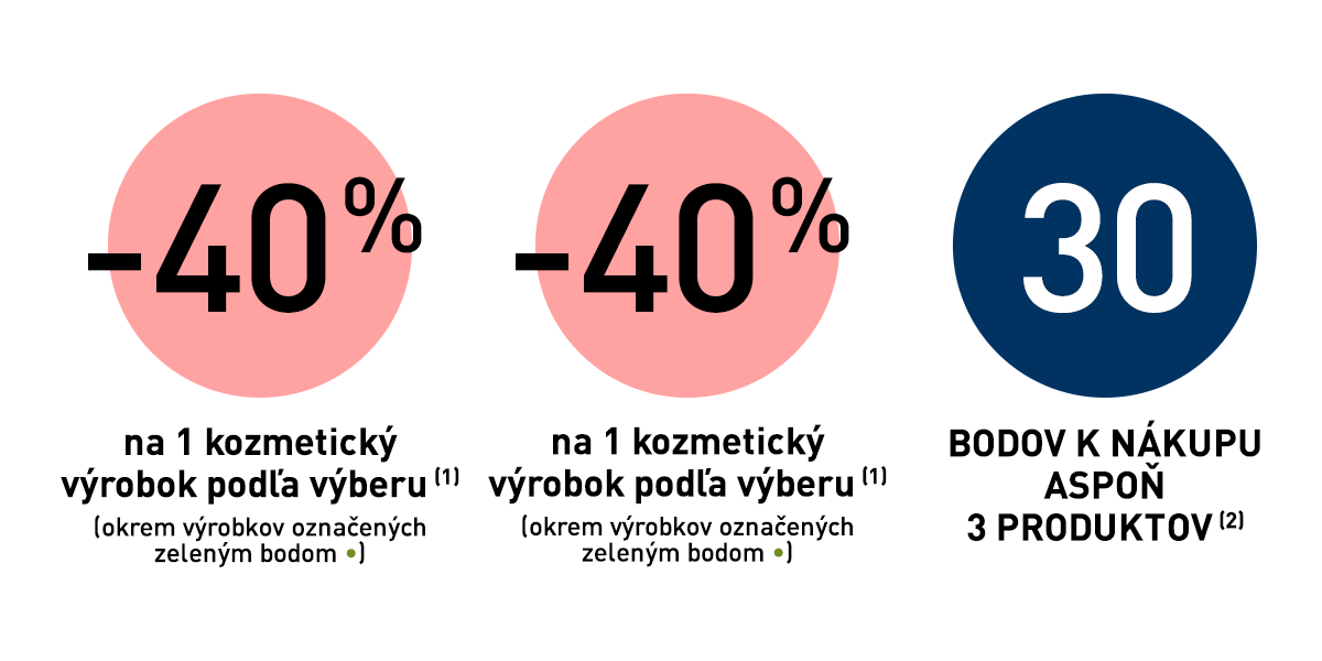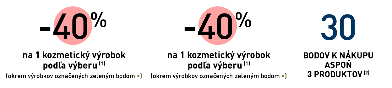 (2) Zľavy a ponuky sa nekumulujú. 30 vernostných bodov k nákupu aspoň 3 produktov je možné využiť len raz.