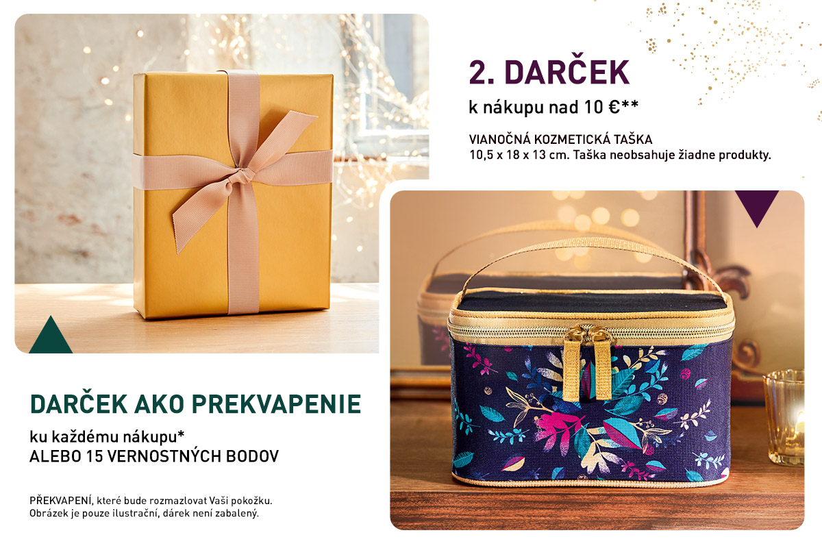 ** Jedna vianočná kozmetická taška alebo 25 vernostnýchh bodov k nákupu nad 10 €.