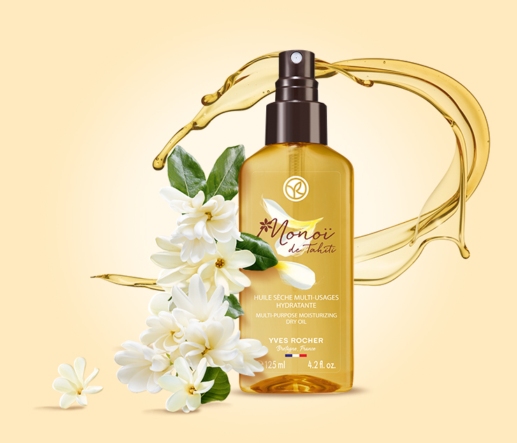 Objavte tajomstvo krásnej kože Tahiťaniek. Dosiahnete to využitím suchého oleja Yves Rocher s olejom Monoi, ktorý hlboko zvlhčuje pokožku, bez toho aby na nej zanechal mastný film.