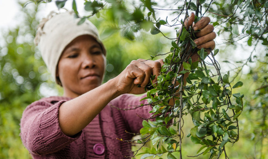 Okrem zdravia vašej pokožky dbáme aj na ochranu prírody a venujeme preto špeciálnu pozornosť podmienkam pestovania a zberu rastlín, ktoré v našich produktoch používame. Aphloiu zbierame vo vysokých náhorných plošinách Madagaskaru, asi 30 kilometrov od hlavného mesta Antananariva. Zber je prevažne v rukách miestnych žien, ktoré počas obdobia dažďov od októbra do apríla starostlivo a ručne vyberajú listy, aby mohli znovu narásť. Aby sme zefektívnili náš dodávateľský reťazec, pomohli sme financovať inštaláciu priemyselného stroja, ktorý umožňuje našim lokálnym partnerom transformovať rastliny na extrakty, a tým zvyšovať hodnotu konečného produktu.