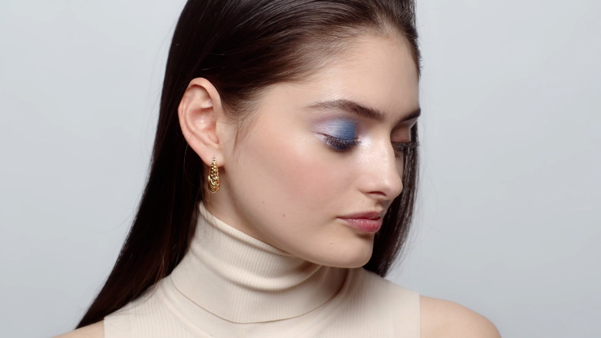 Ak hľadáte detailnejšie líčenie, ktoré by vám zvýraznilo oči, tento návod je tu presne pre vás! Na vytvorenie tohto looku budete potrebovať Očné tiene v ceruzke v hnedom, slivkovom a polnočne modrom odtieni a Vodovzdornú ceruzku na oči.