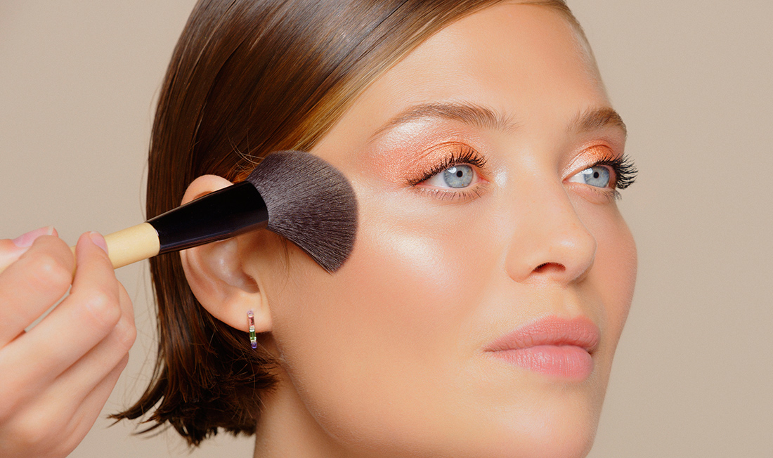 Následne naneste svetlejší odtieň pod nadočnicový oblúk, aby sa zotreli prechody predchádzajúceho odtieňa. My sme vybrali odtieň Etincelle z rovnakej palety. Nakoniec aplikujte ešte svetlejší odtieň do vnútorného kútika oka a na nadočnicový oblúk. Modelka je nalíčená odtieňom Lotus z Palety očných tieňov pre zimné líčenie.